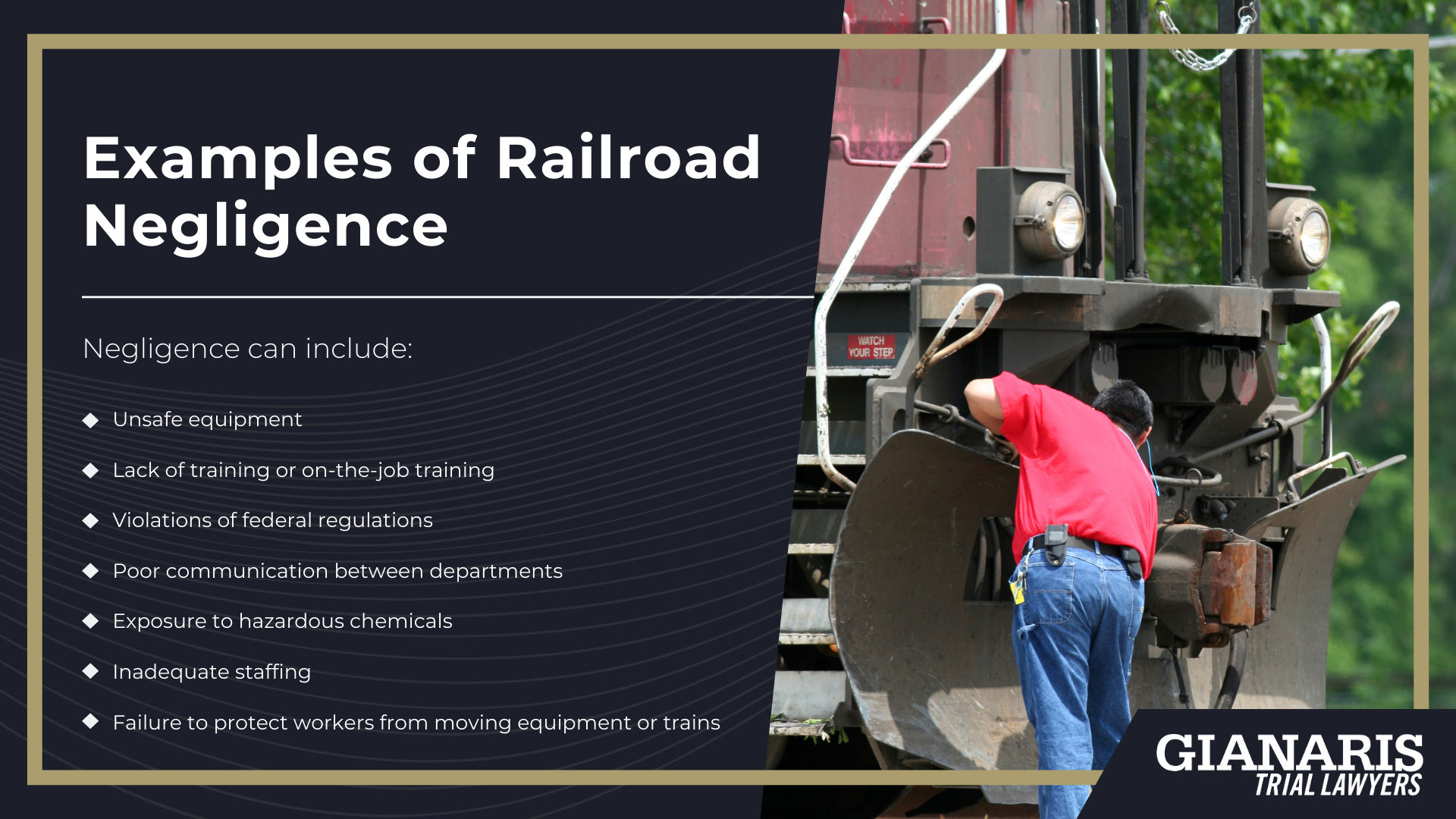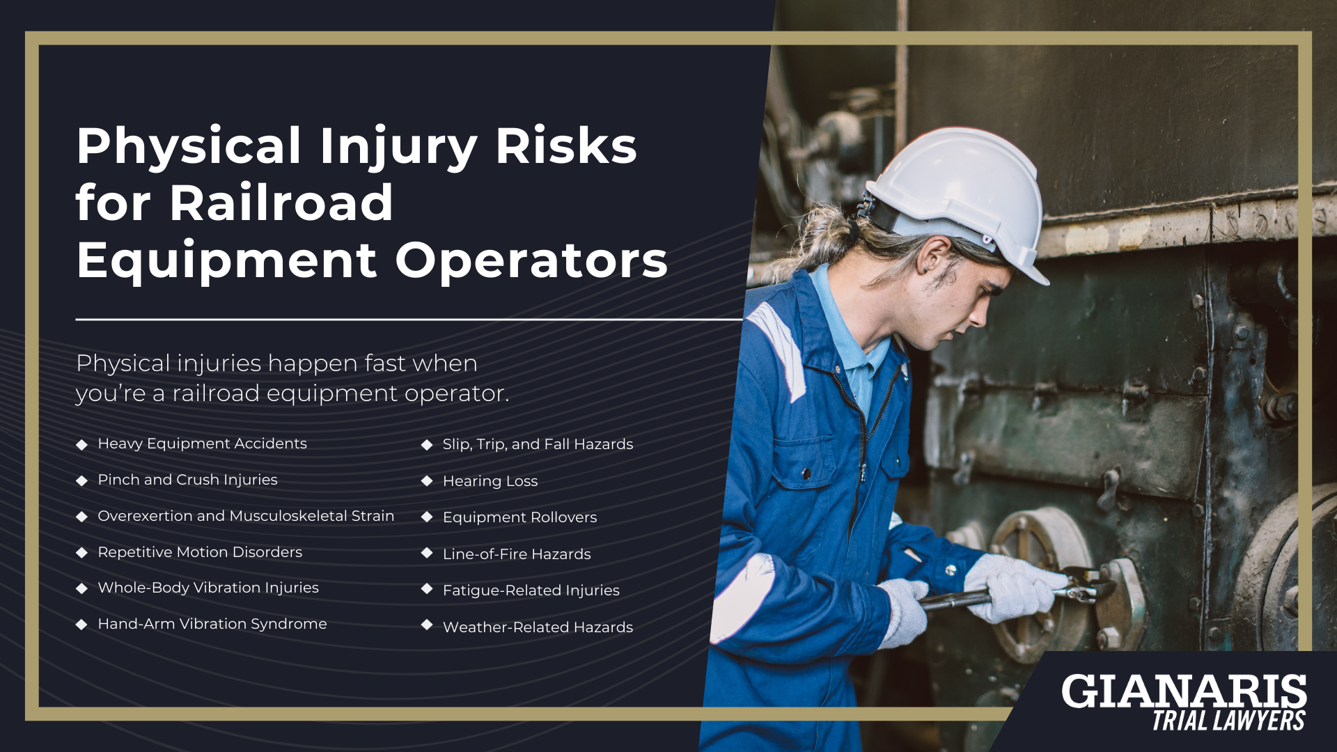Physical injuries happen fast when you’re a railroad equipment operator.