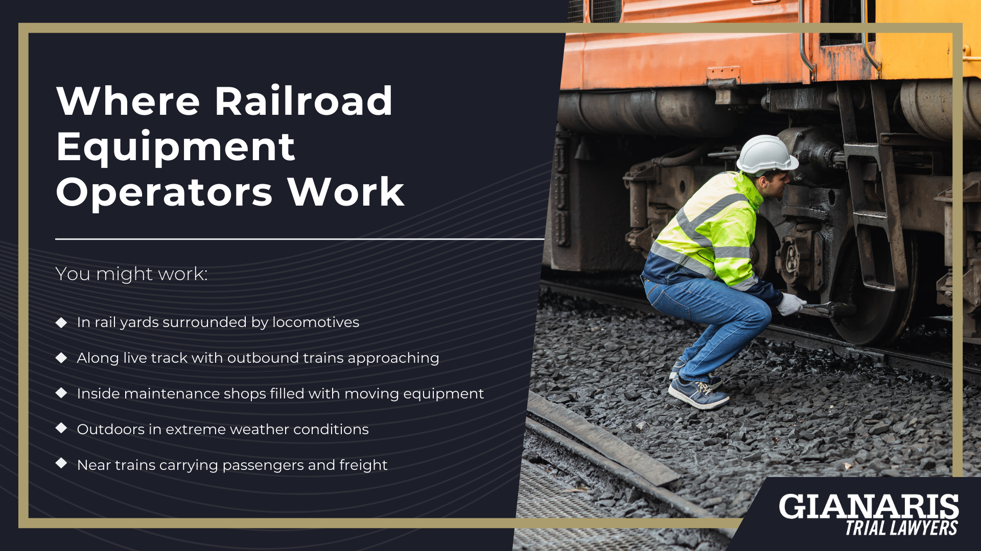 You operate heavy equipment in tight spaces where trains, locomotives, and train cars move constantly.